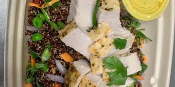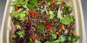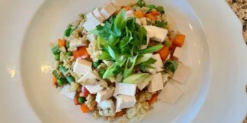 Quinoa with Mixed Vegetable Salad and Honey Turmeric Dressing
