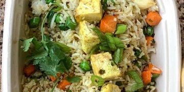 Diced vegetables, ginger, garlic, and basmati rice with spices (Mild/Medium/Spicy)